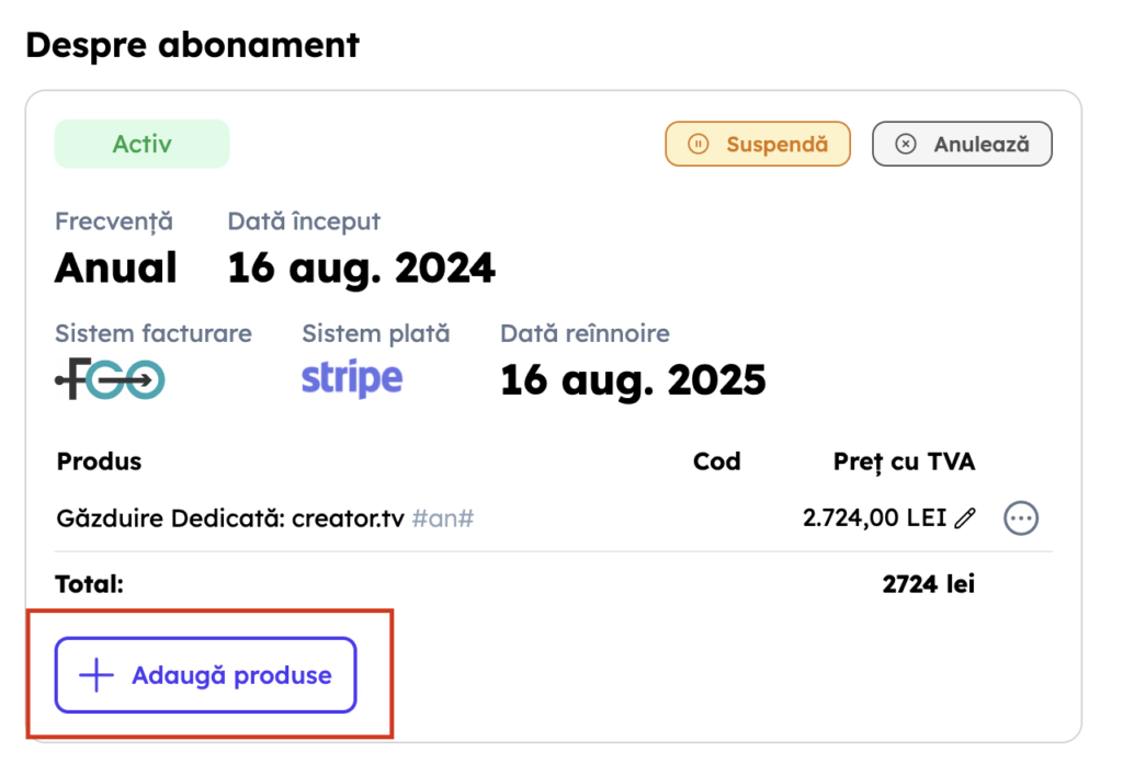 2. Poți alege să adaugi un produs/serviciu o dată sau pe toată perioada abonamentului