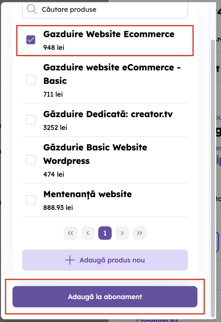 3. Selectează produsul/produsele pe care vrei să le adaugi la abonament