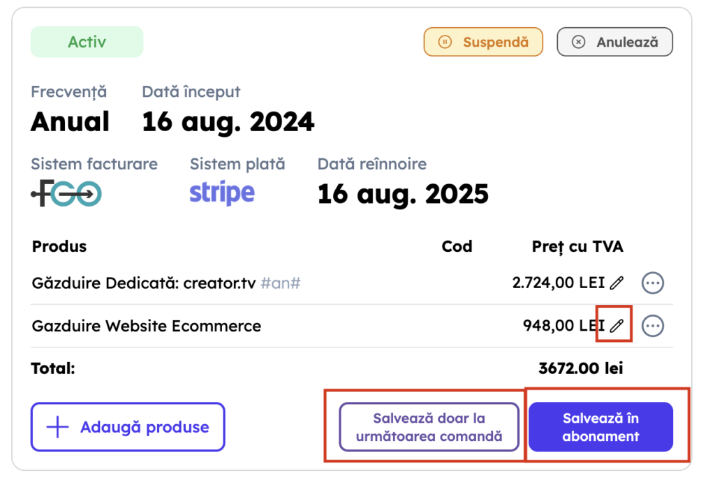 4.2. Dacă selectezi „Salvează în abonament” atunci produsul va fi adăugat pentru toate plățile de acum în viitor
