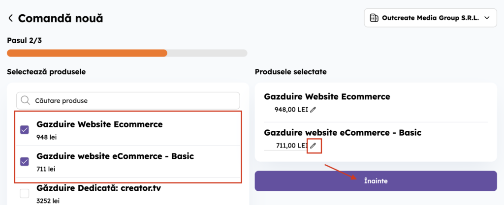 4. Selectează produsul/produsele