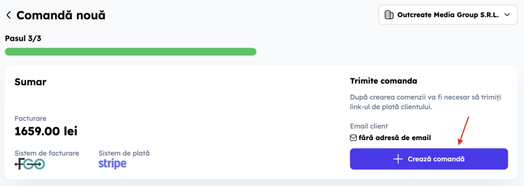 5. Crează comanda (clientul este notificat automat)