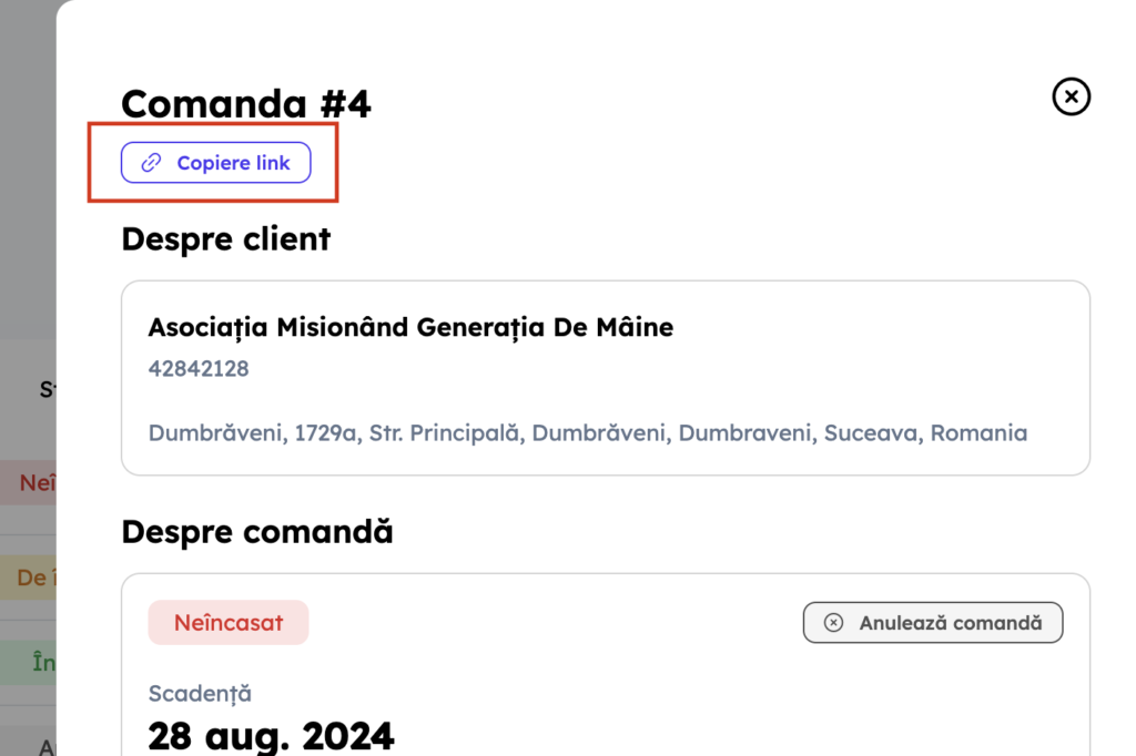 Sau poți copia link-ul de plată și i-l poți trimite direct pentru a încasa mai ușor.